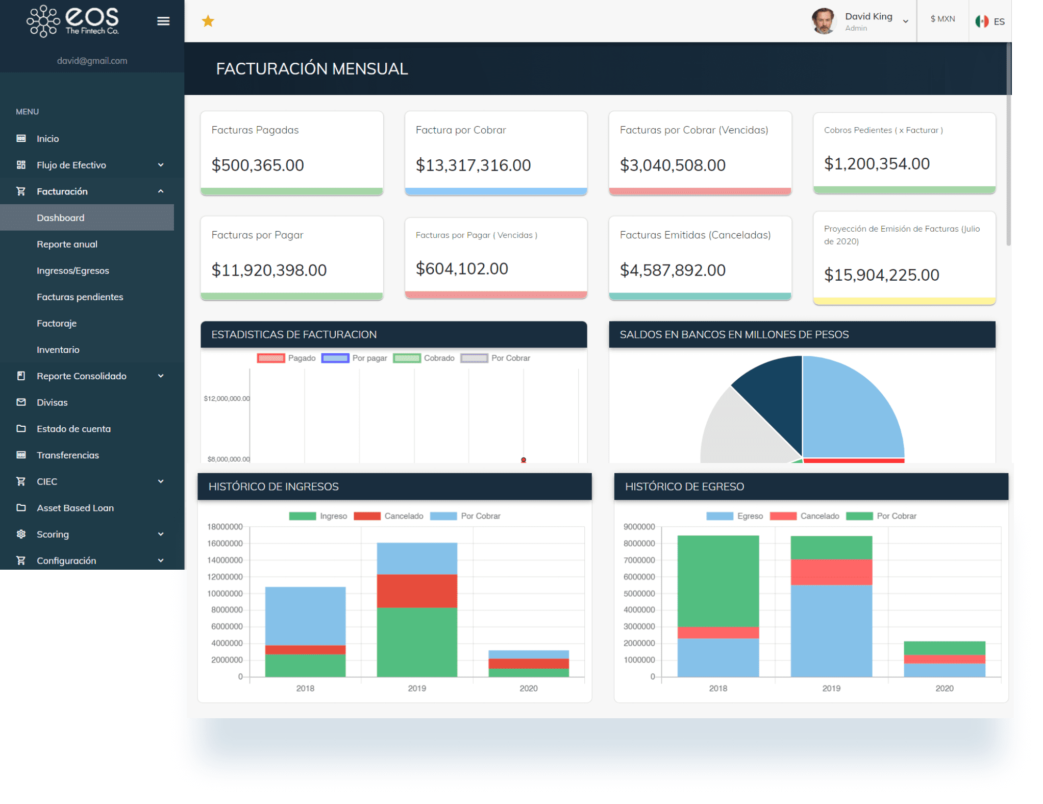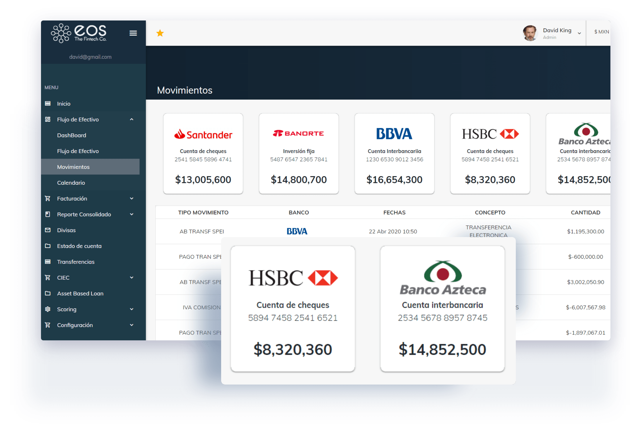 Visión panorámica de flujo de efectivo, saldos en tus cuentas bancarias, facturación y líquidez